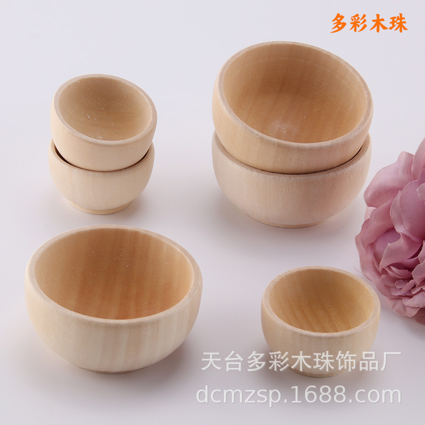 ハスの木の原木の色の木の碗の子供のままごとの台所の食器の小さい木の碗のおもちゃの木製の工芸品の卸売り