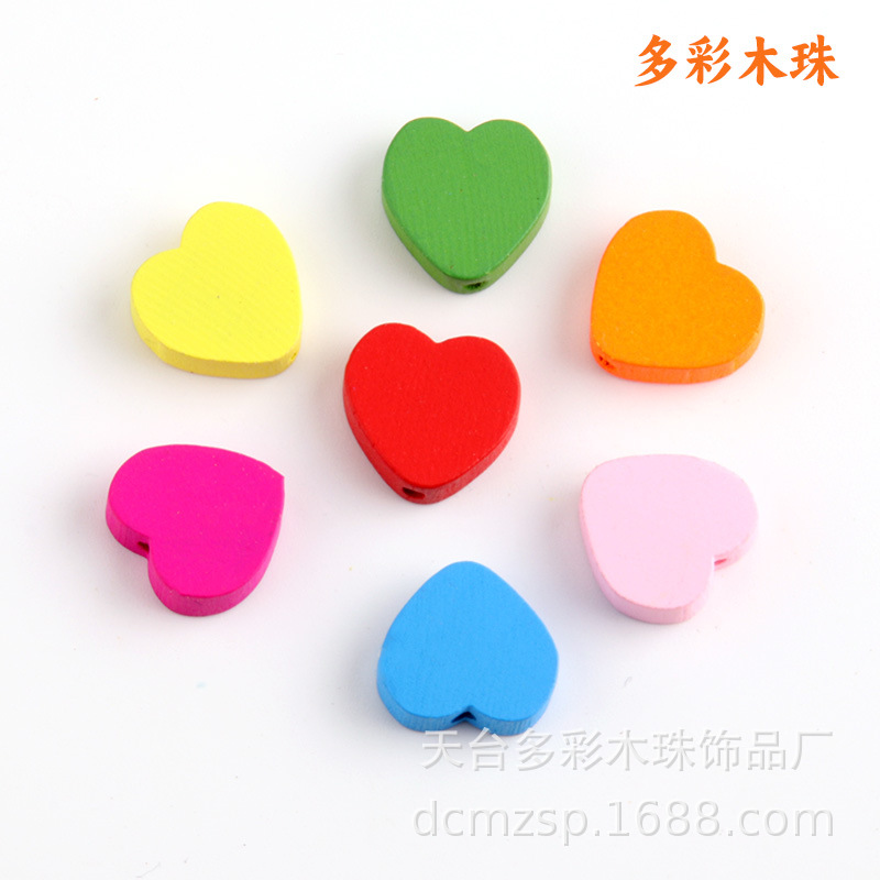 1.8cm韓国版カラー愛木珠ハート型木珠桃心木珠diy手作り散珠アクセサリー部品