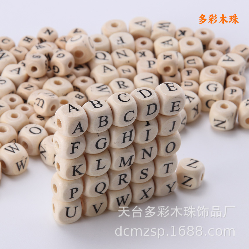 Diy部品10x10mmアルファベットブロック木珠26アルファベット木珠原木色方形木珠散珠卸売り