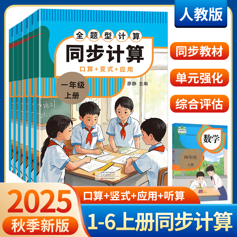 2025人教版一二三四五六年級下巻同期口算問題カード縦型応用問題練習帳書