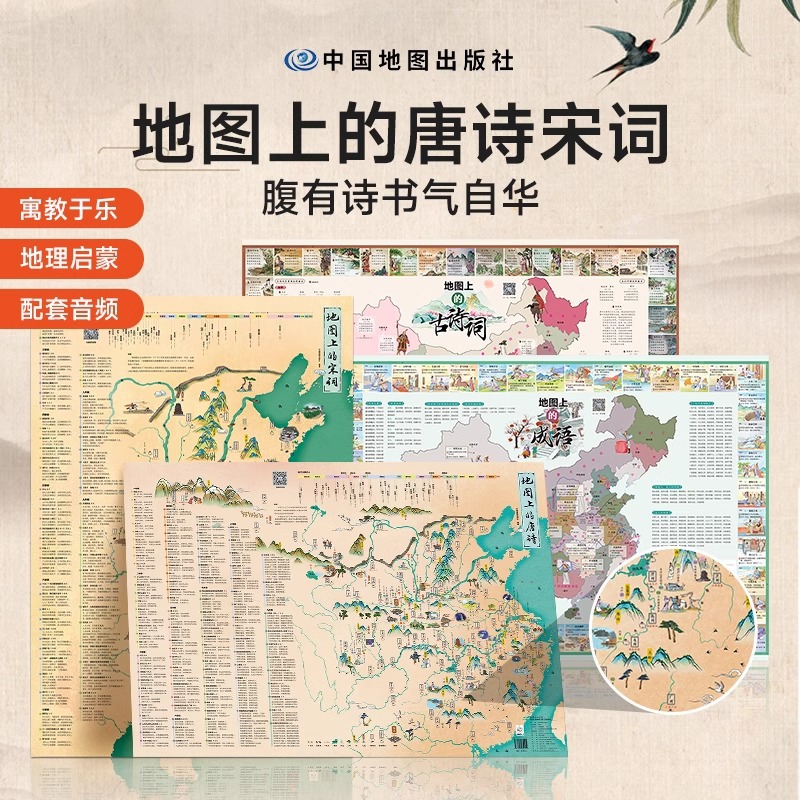 地図の上の唐詩と宋語は、北斗の子供の成語と古詩の地理的な壁を伴って読みます。