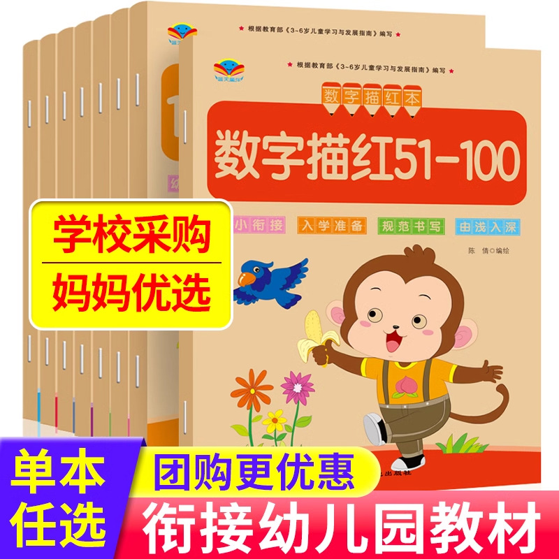 幼い子供は就学前の鉛筆をつないで赤い本のピンインの漢字の数字を描きます。