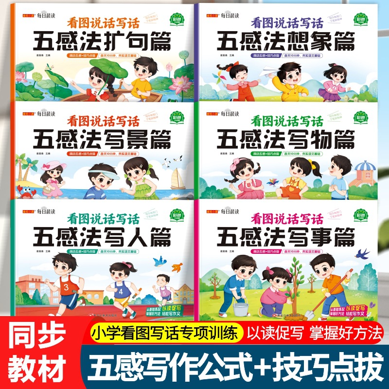 小学生は図を見て話して話を書く五感法を書いて訓練します。