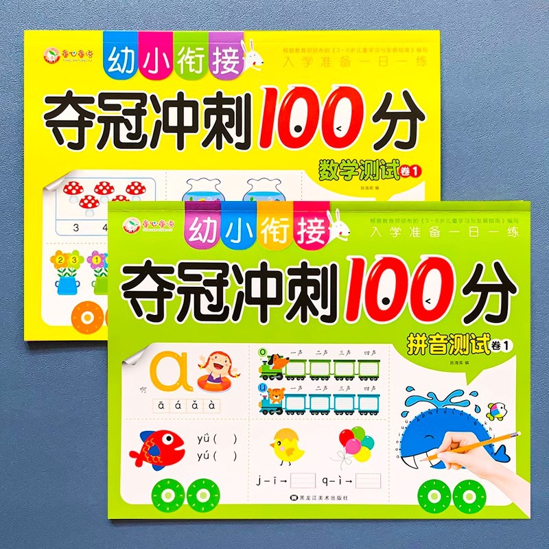 優勝ラストスパート100点大クラス幼小連絡テストボリューム練習帳言語数学ピンイン上下巻セット