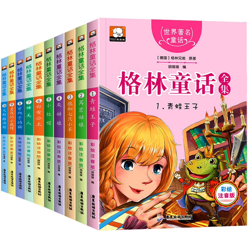 グリム童話全集10冊のカラー図の発音版の一二三四五六年級の小学生の課外書籍の卸売り