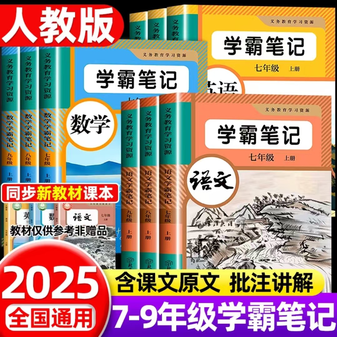2025年秋の教科書予習指導資料、授業ノート、中国語、数学、英語、上巻、卸売
