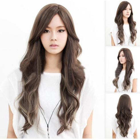 卸売りファッション気質かつら長巻き髪ふわふわ斜め前髪流行髪型義烏かつらメーカー直供現物