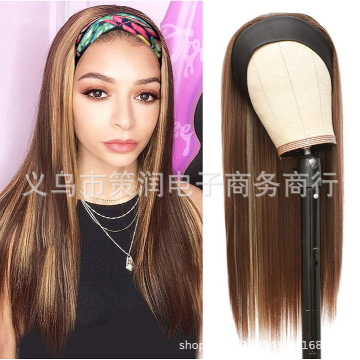 頭巾かつらセット欧米のかつらファッション長直髪化繊高温糸多色グラデーションリボン半頭カバー