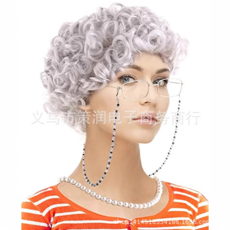かつらの女性の中高年は老人の番組の男性の女性のかつらを演じます。