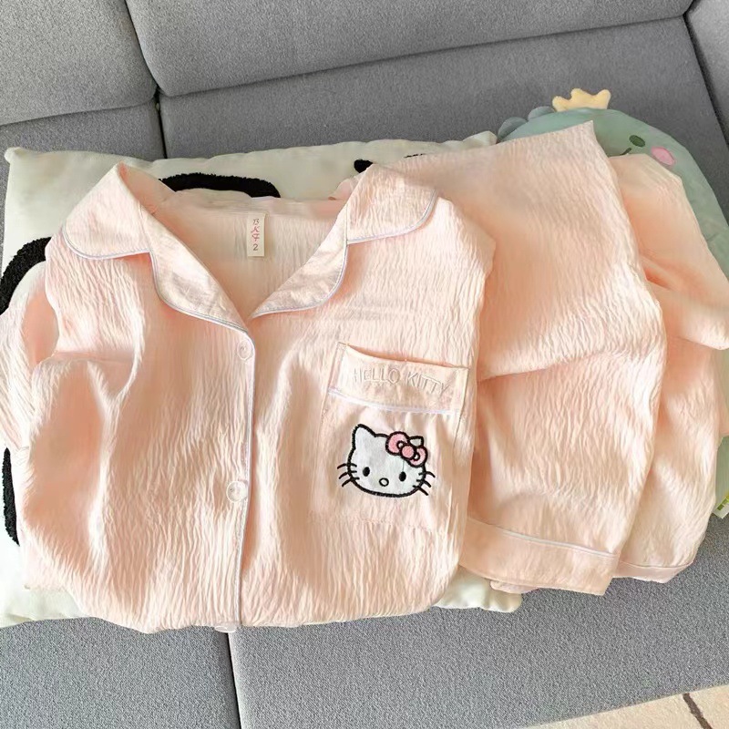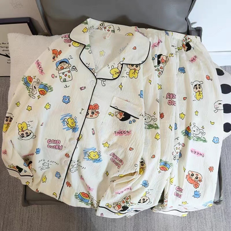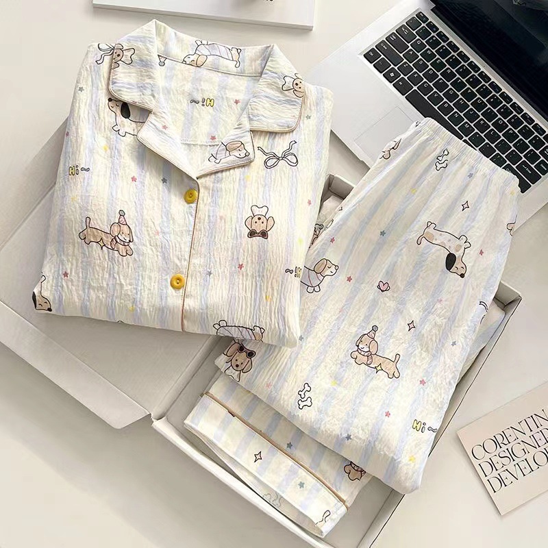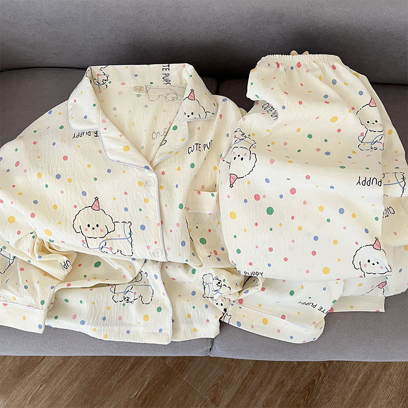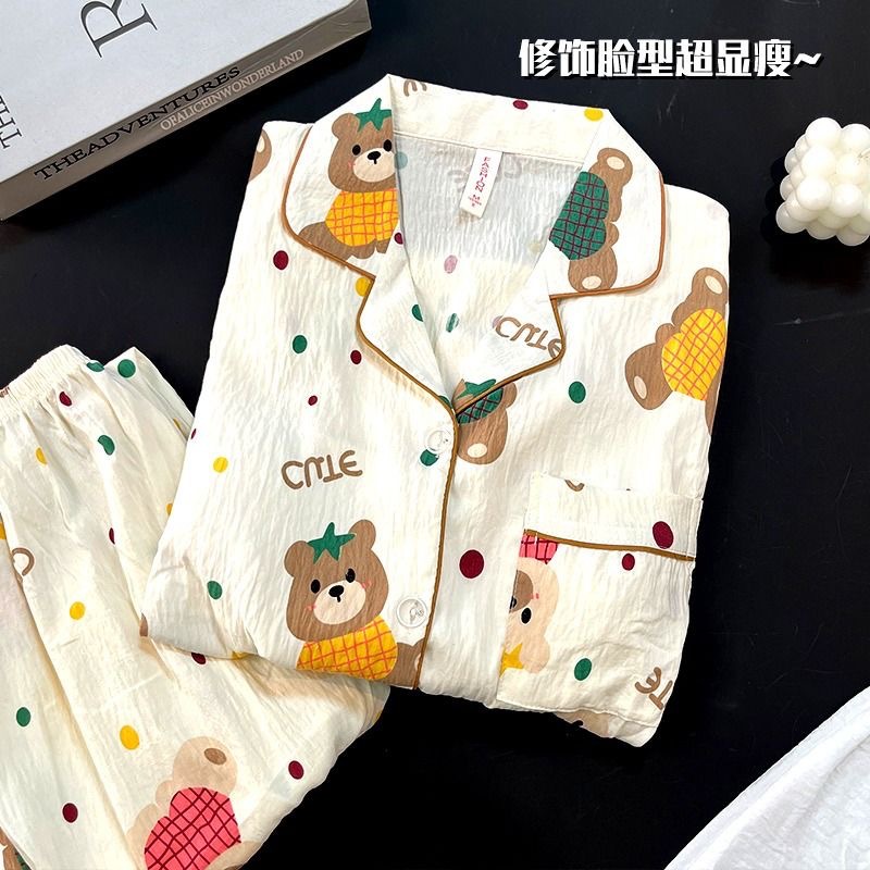 パジャマの女性用2点セット春秋用2024雲綿長袖かわいいアニメカーディガン襟付きホームウェアセット