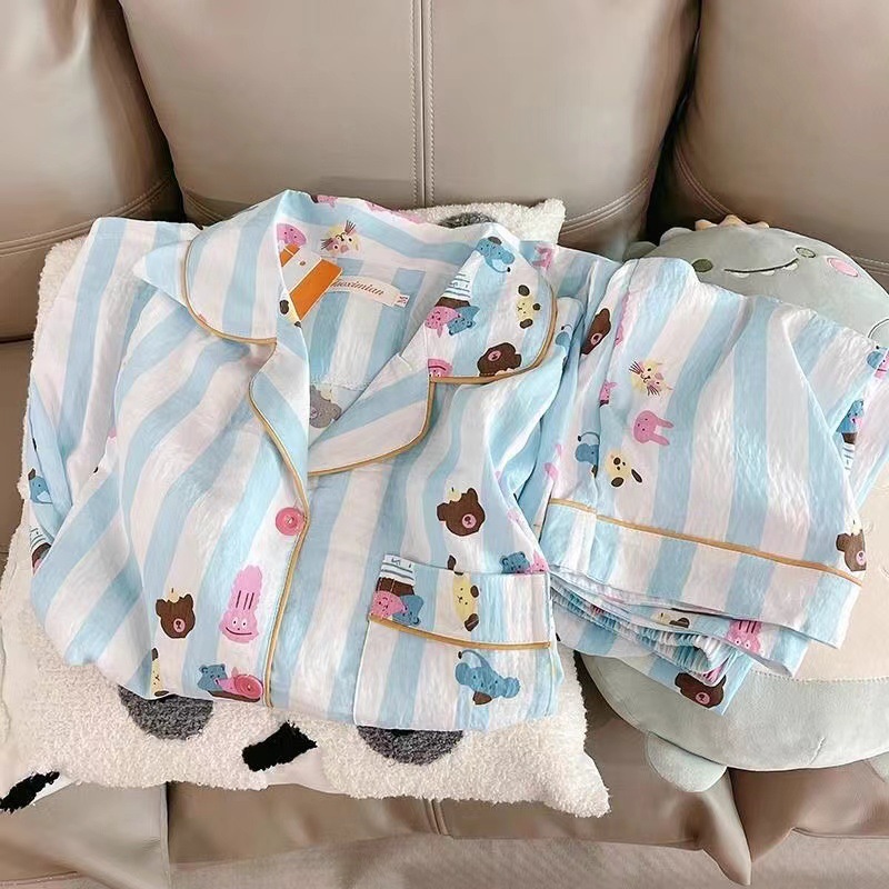 2024新作雲綿パジャマ女性春と秋のアニメins風長袖長ズボン寮ルームウェアセット