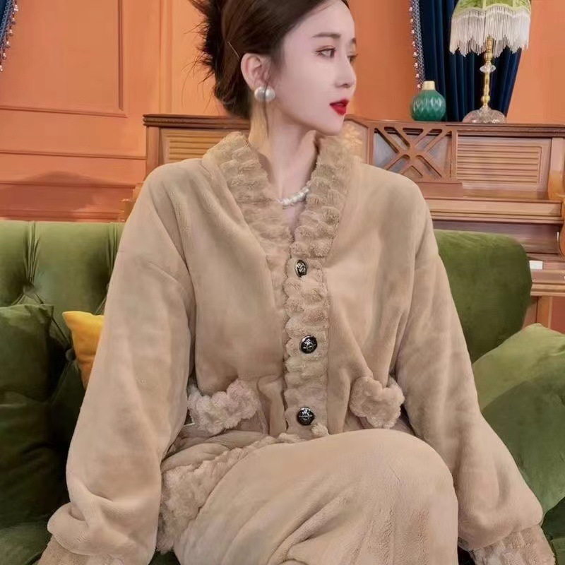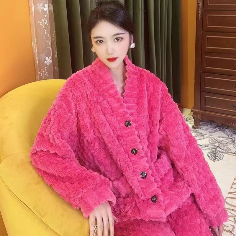 2024新品冬パジャマレディース厚手コーラルフリースinsネットレッド高級感ゆったりホームウェアパジャマセット