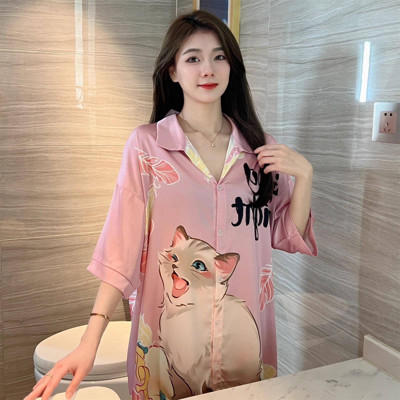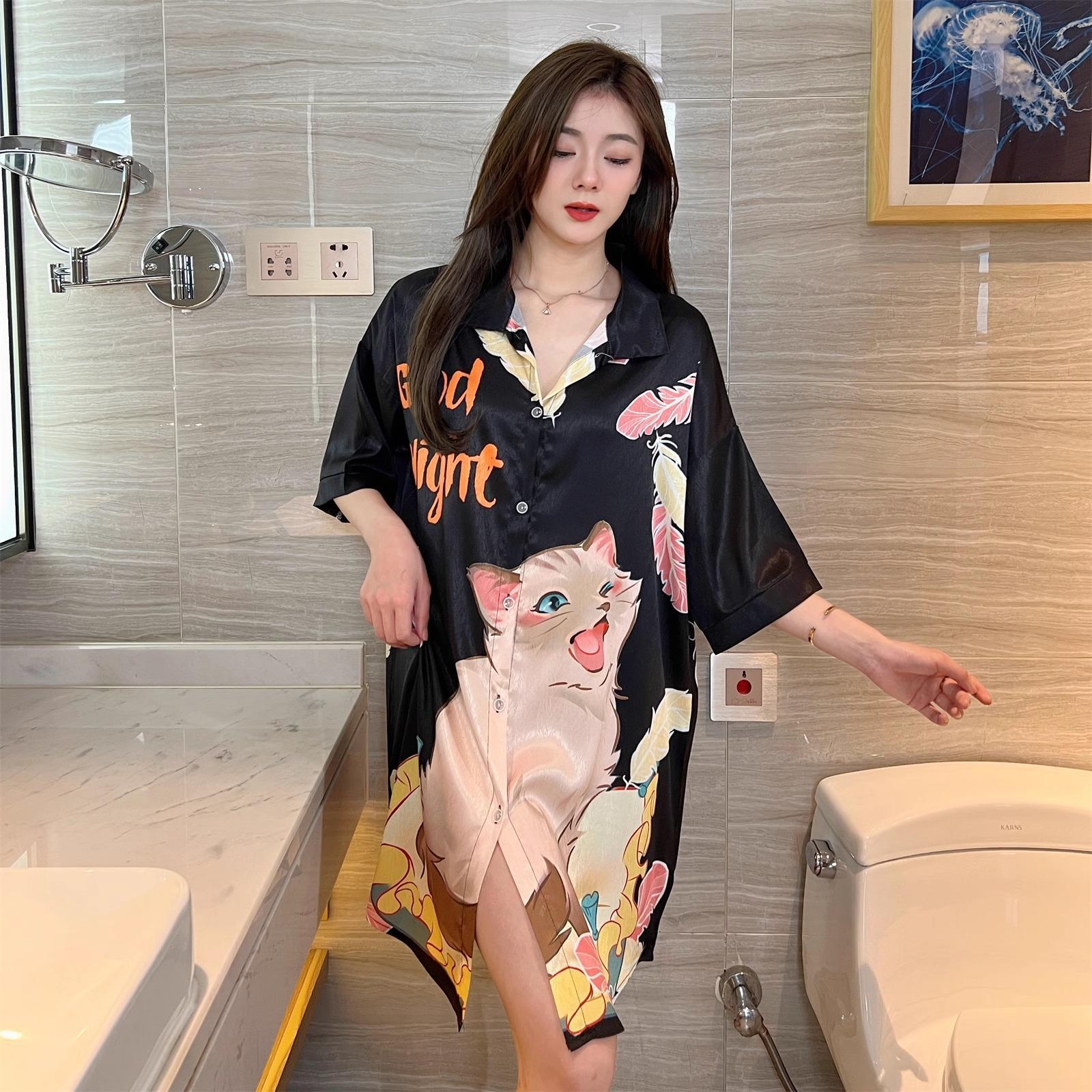 氷糸寝スカート女夏2024新アニメ猫セクシー高級ネット赤半袖シャツパジャマ家服