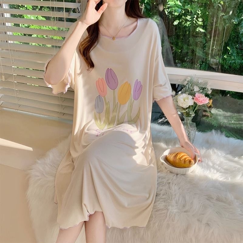 パジャマの女性の半袖の甘い薄いサイズのゆったりした大きいサイズの新型の氷の糸のかわいい少女の王女の学生