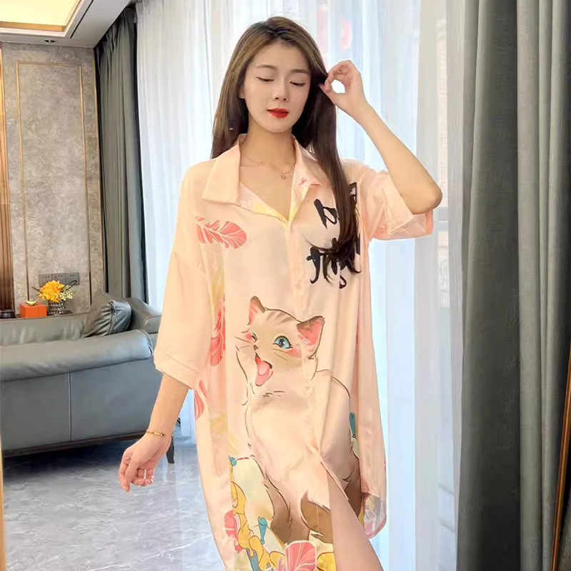 震え音ネット赤寝スカート女夏セクシー新作氷糸純欲風高級感猫大サイズ外着シャツスカート