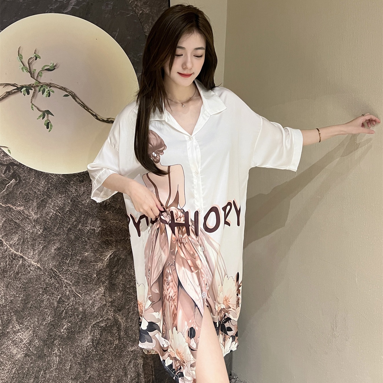 2024年新作パジャマ夏レディース半袖アイス甘いセクシー漫画高级感シャツ襟ゆるいパジャマ