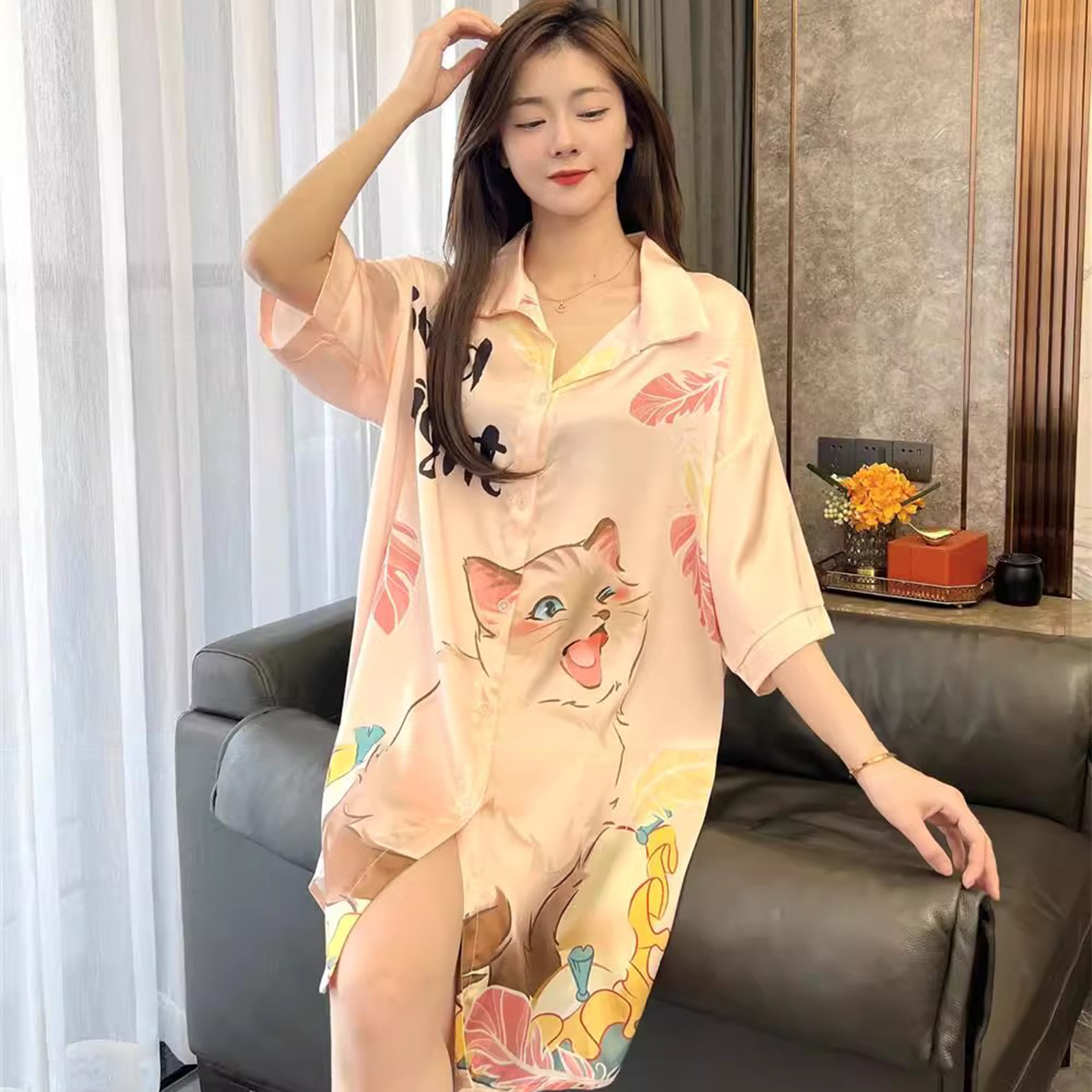 ネットの赤い氷の糸の眠るスカートの女性の夏の2024の新型のセクシーな純欲の風の猫は外で大きいサイズのファッションのシャツのスカートを着ることができます。