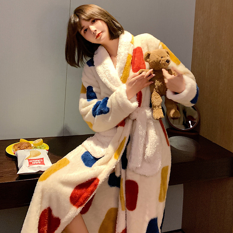 冬の寝衣の女性サンゴのベルベットの厚いバスローブの長さが長い2024年の新しい秋冬フランネルのパジャマ