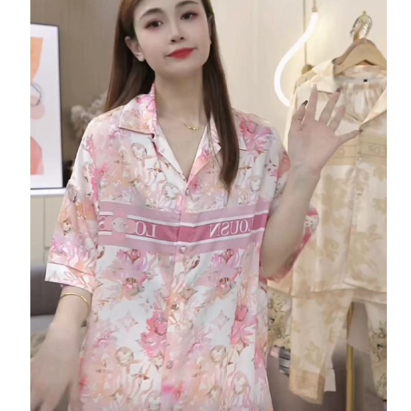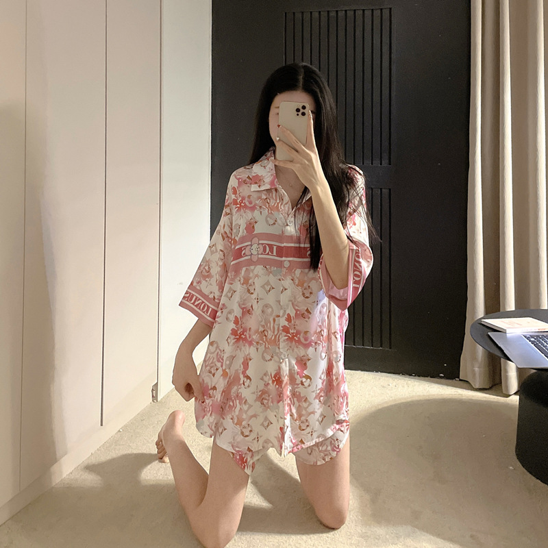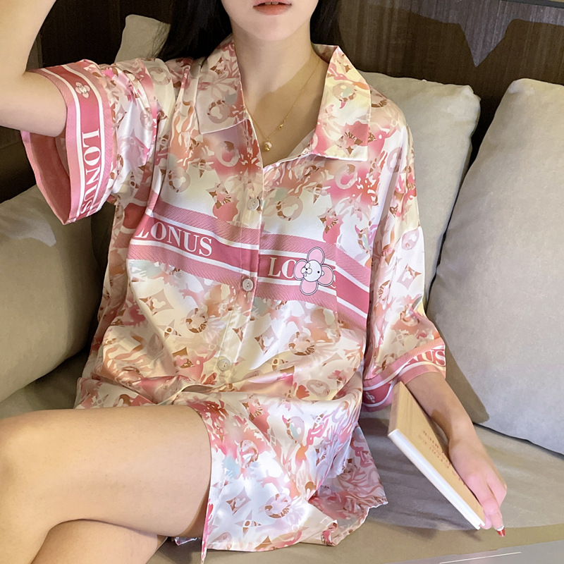 ネット赤氷糸寝スカート夏の新型半袖薄い花のゆるい高級感パジャマシャツファッション家服
