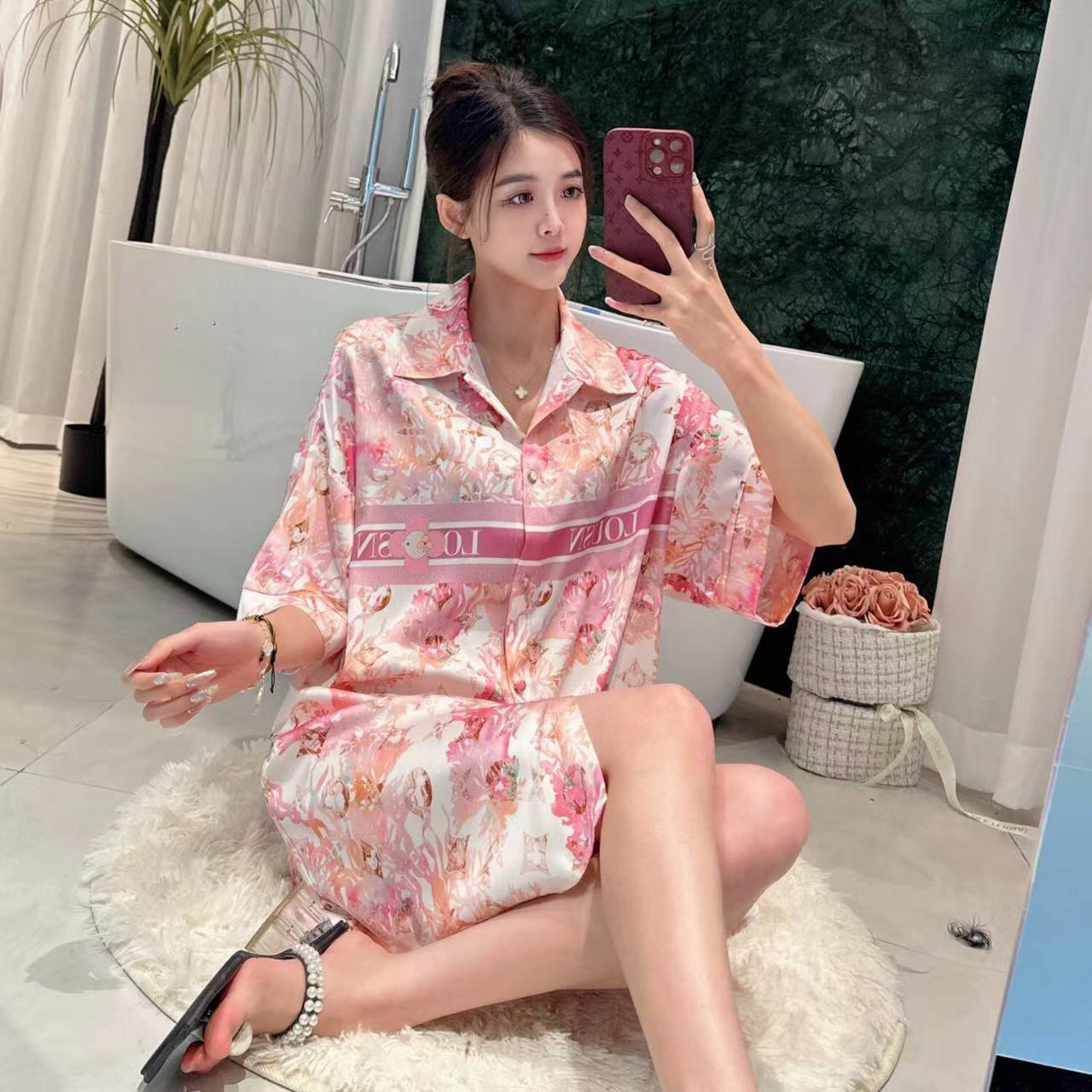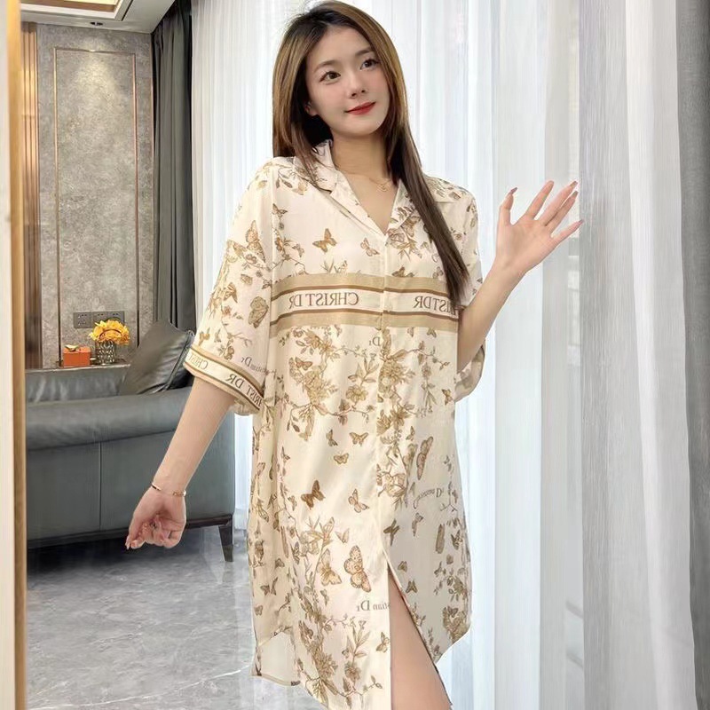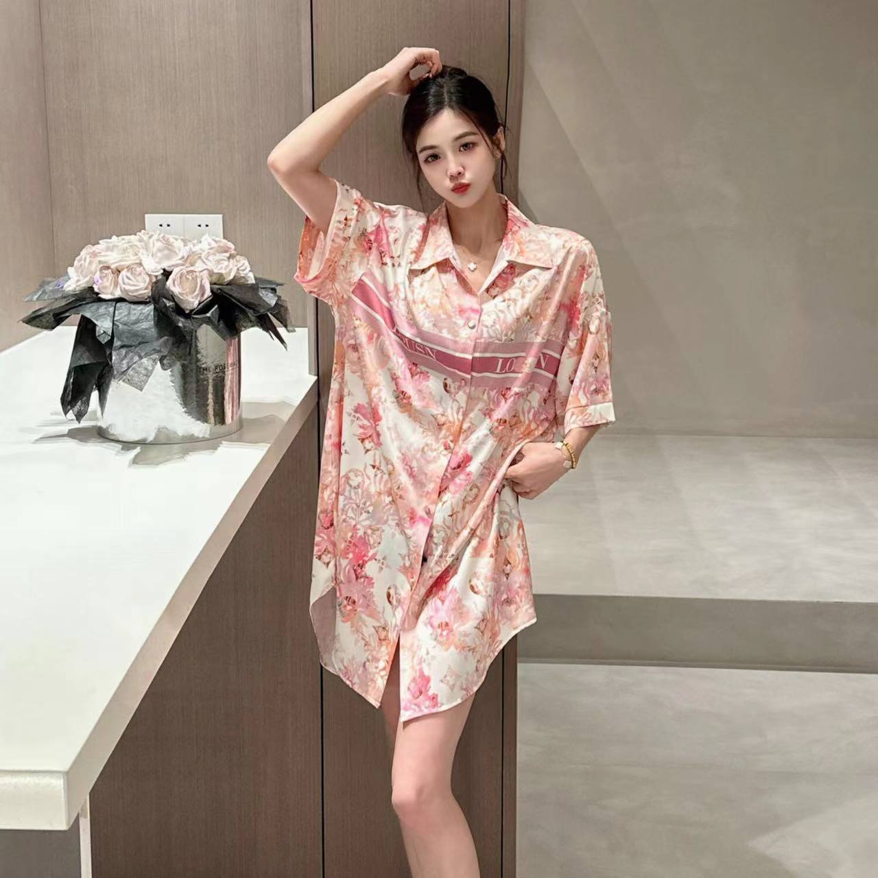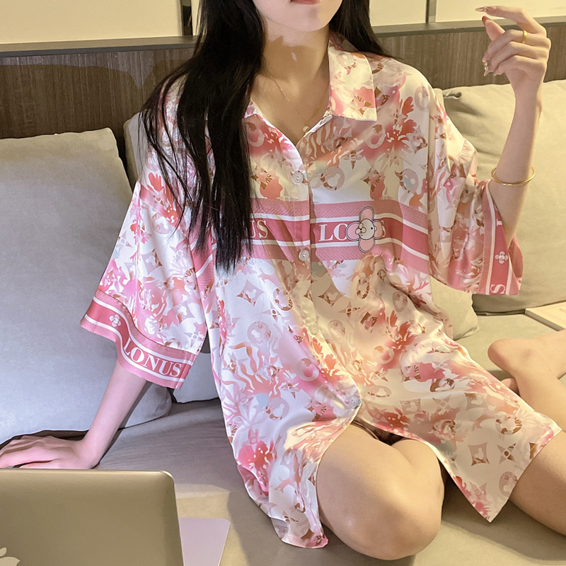 メーカー直販夏半袖シャツ寝スカート女性アイス夏セクシーパジャマミディアムカーディガン