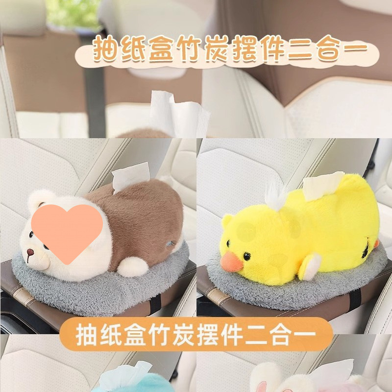 車のティッシュボックス、アームレストボックス、ティッシュボックス、クリエイティブな車の竹炭バッグの装飾品、高級人形、車の室内装飾