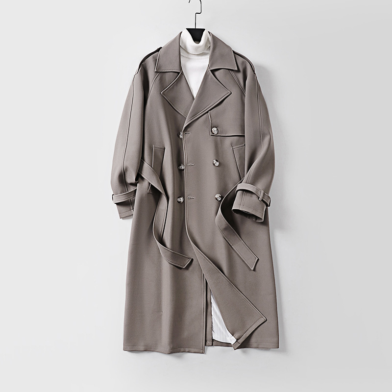 春と秋のウインドブレーカーメンズエクストラロングハンサム大きいサイズコートレトロデザインレースアップライト大人トレンチコート大きいサイズ男性