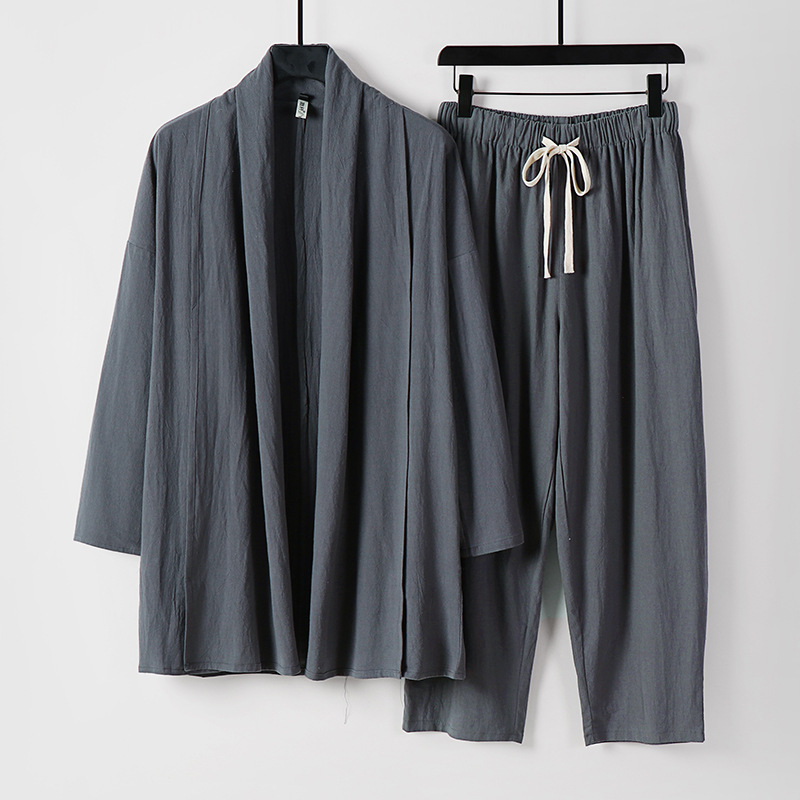 大きいサイズの中国風唐装リネンスーツメンズロングカーディガンカジュアルルーズアンティークスタイルコットンとリネンの9点パンツ新しい漢服