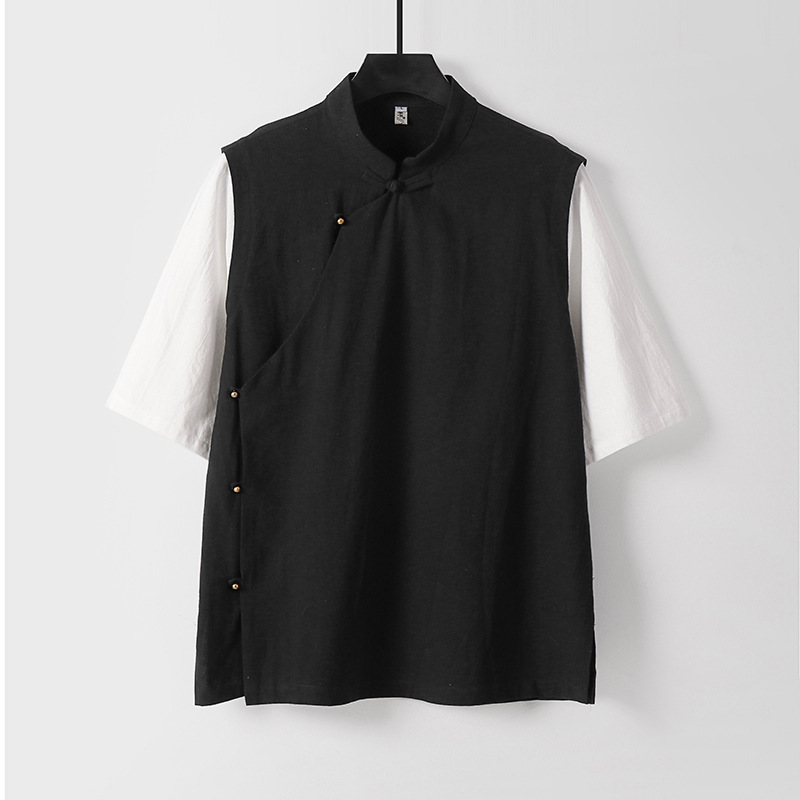 春と秋の新作中国風メンズ大きいサイズルーズリネンノースリーブベストメンズレトロ禅ボタンベストメンズ