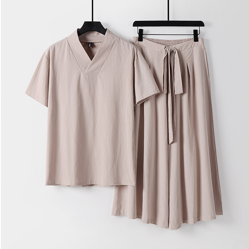 半袖Tシャツサマースーツ中国風綿麻紳士服ハンサムリネン2点セット夏スーツ男性用