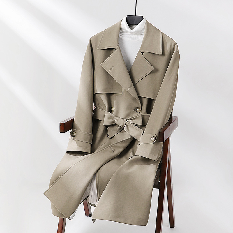 春と秋の大きいサイズのルーズ高密度ツイストファインツイルウインドブレーカーメンズロングコートハイエンドルーズハンティングコート