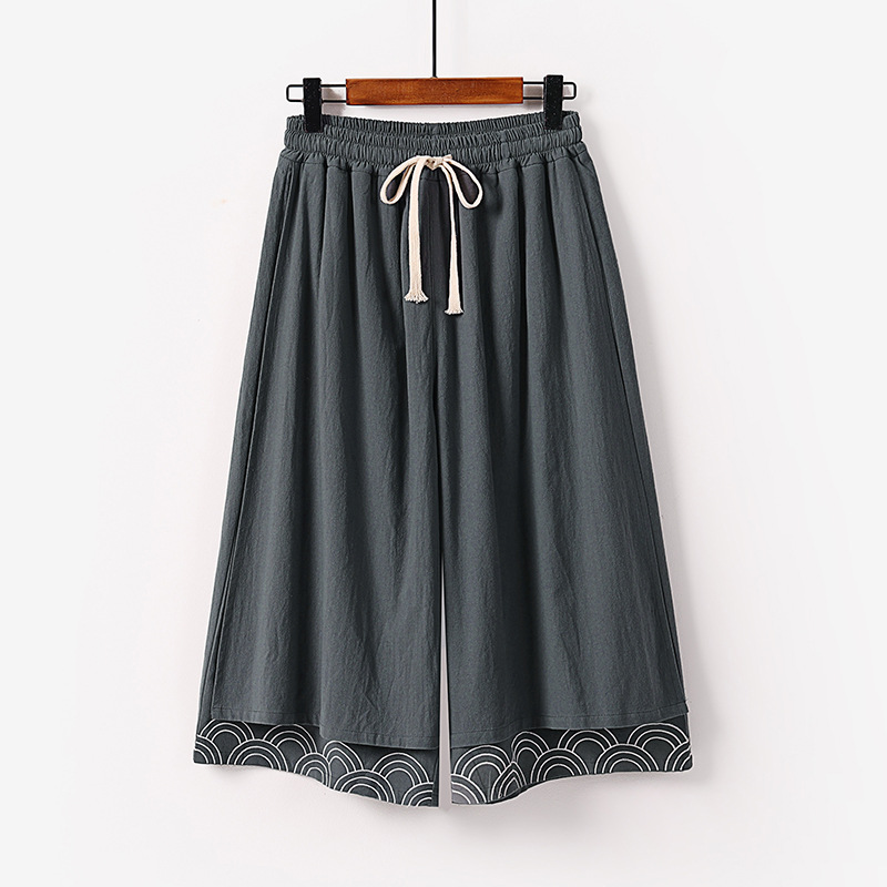 ハーレムパンツメンズ刺繍入りナショナルトレンドパンツ夏薄手クロップドパンツルーズリネンパンツトレンディブランドレトロコットンとリネンミッドパンツ