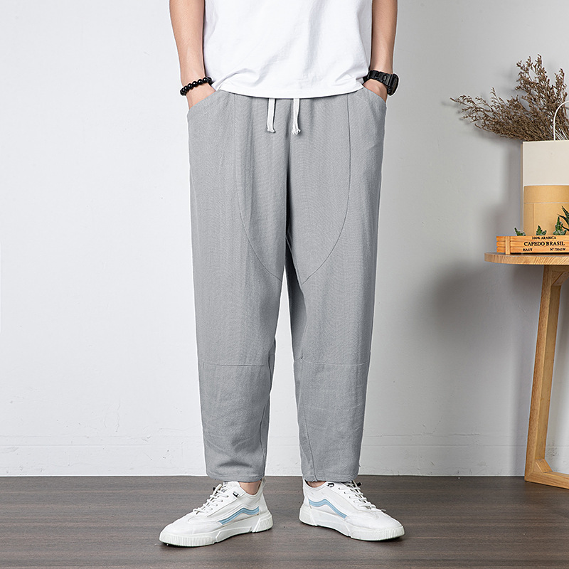 大きいサイズのレギンスカジュアルパンツメンズ夏薄い通気性のある綿とリネンの伸縮性ウエストレトロリネンパンツトレンディな9点パンツ