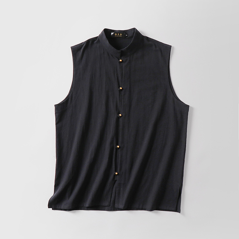 夏のメンズ中国風の綿とリネンの大きいサイズの漢服ベストノースリーブトップレトロルーズカジュアルアウトドアチョッキジャケット