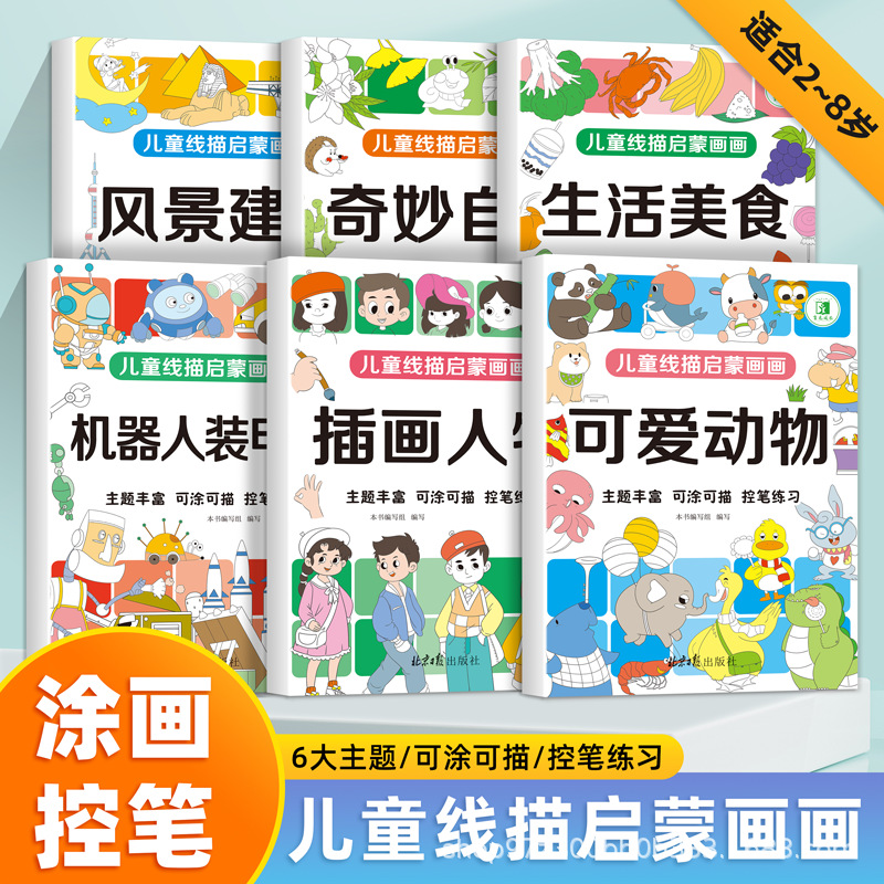 子供の線画は絵本の美術啓蒙訓練昆虫植物漫画キャラクターを描きます。