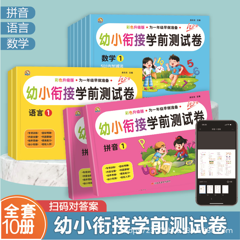 幼い子供は就学前テストボリューム言語数学ピンイン大クラスの就学前クラスの練習帳を接続して、一年生のために準備します