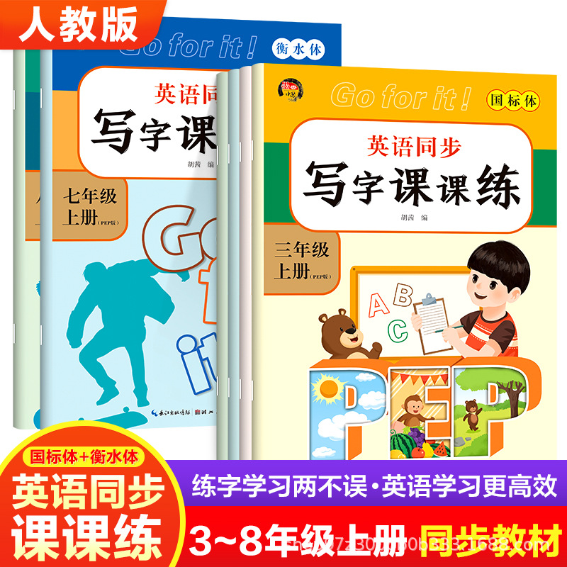 3-8年生英語の字帖同期書の字を書く授業の練習人教版の上で本文の単語を書いて黙認します。