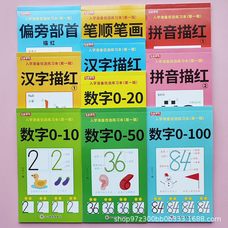 幼い連絡は赤い本のピンインの数字を描きます。