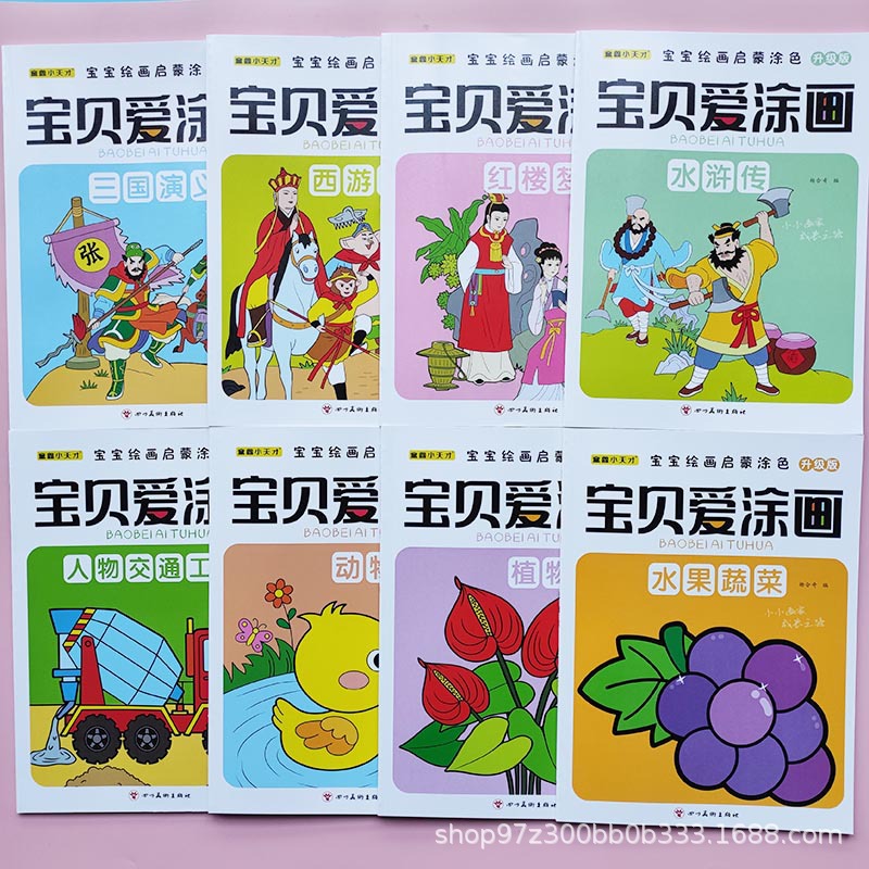 児童塗り絵絵画啓蒙四大名著人物動物植物果物野菜幼児集中力訓練
