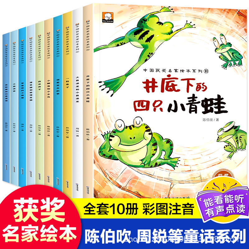 井戸の下の4匹のカエルの幼稚園の絵本の物語の本のセットの10冊の受賞する名家の注音の絵本