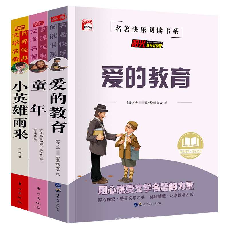 愛の教育の小さい英雄の雨は子供の頃の本のゴルジの小学生の6学年の課外に来て本を読みます。