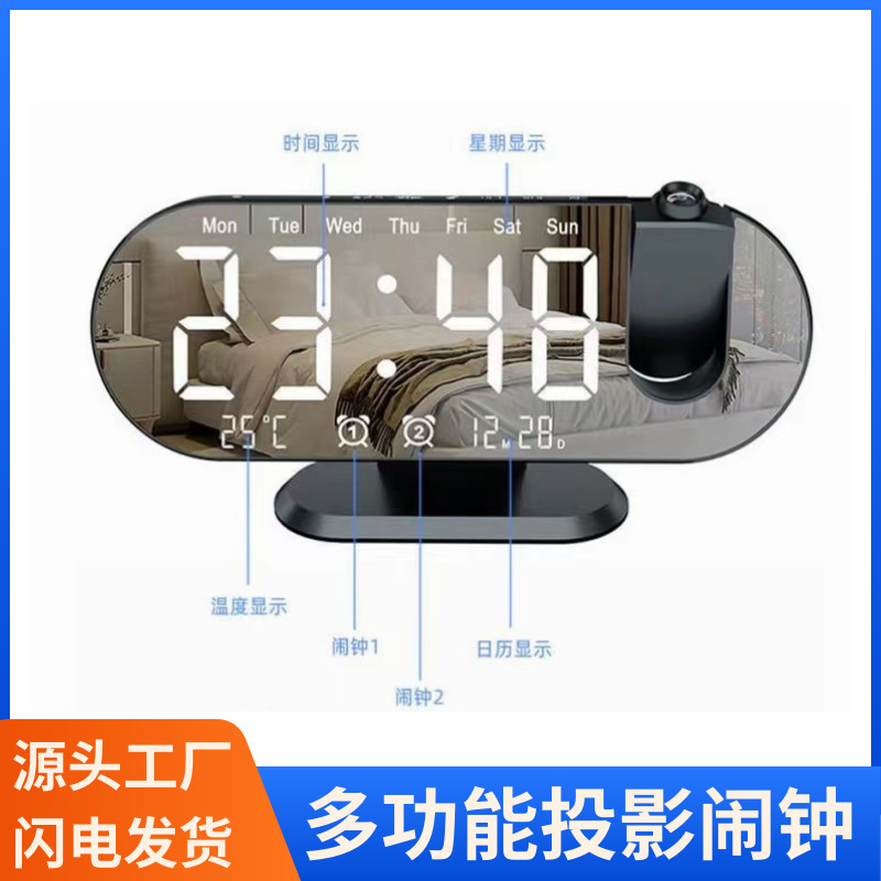 クロスボーダー新品led投影時計電子目覚まし時計週間二重目覚まし時計温度計電子鏡面目覚まし時計プレゼント