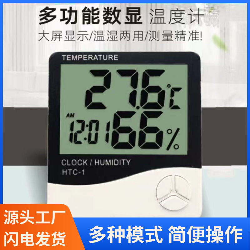 HTC-1大画面屋内外電子湿度計温度計家庭用湿度計目覚まし時計付き卸売り