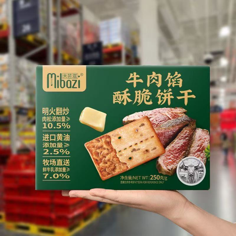 ミバジ ビーフフィリング ベーコンチーズ クリスピーヌガー ビスケット ソーダビスケット アフタヌーンティー スナック