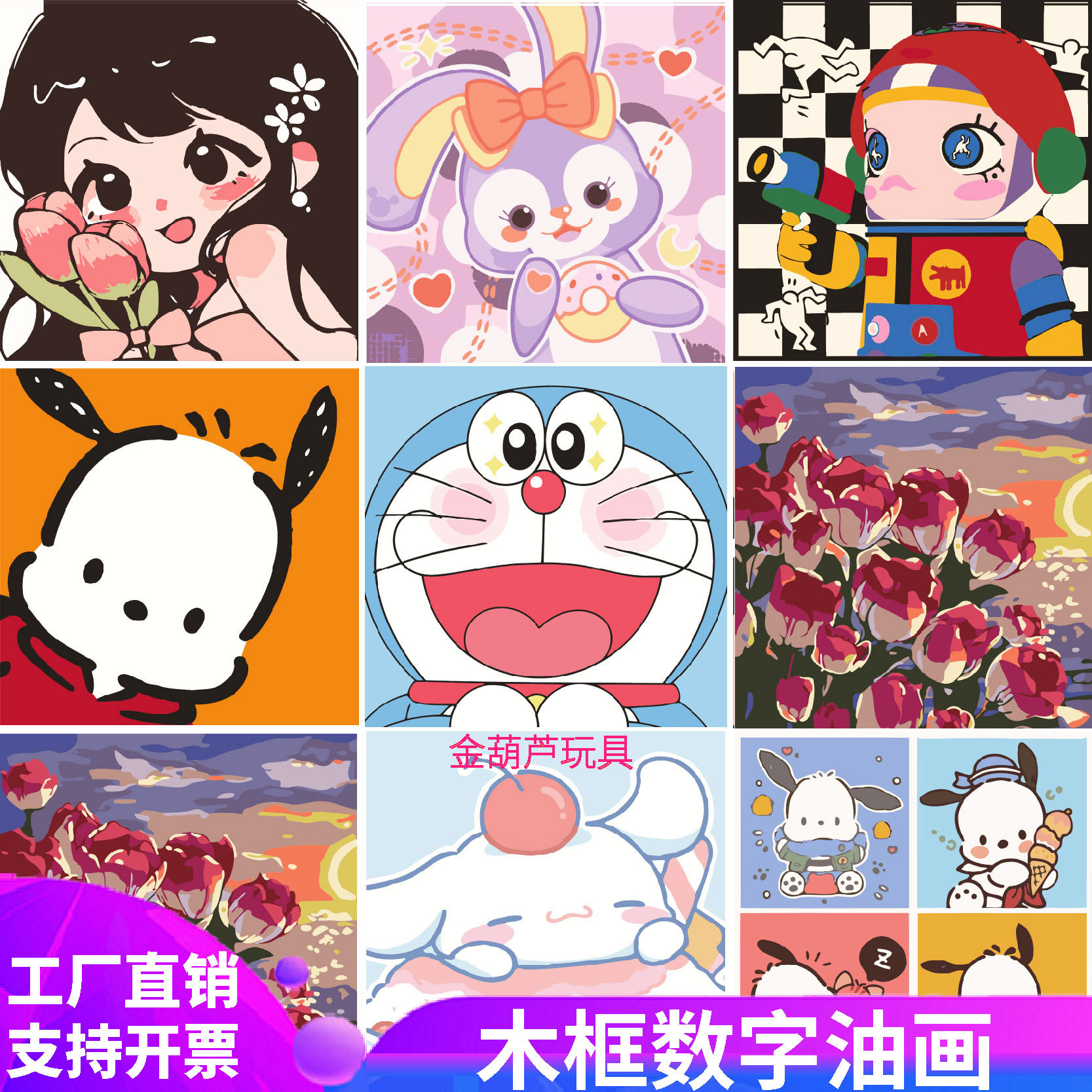 デジタル油絵diy子供塗りつぶし漫画アニメ塗装手作り癒し系かわいい装飾画卸売り