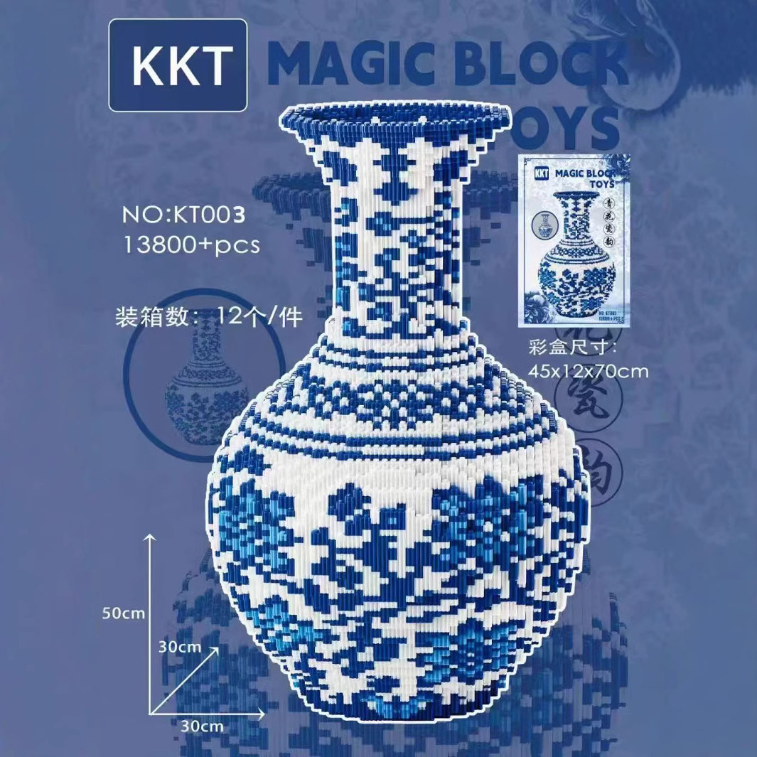特大青と白の磁器花瓶ビルディングブロック組み立て中国風シリーズビルディングブロック微粒子教育玩具装飾品機関ギフト
