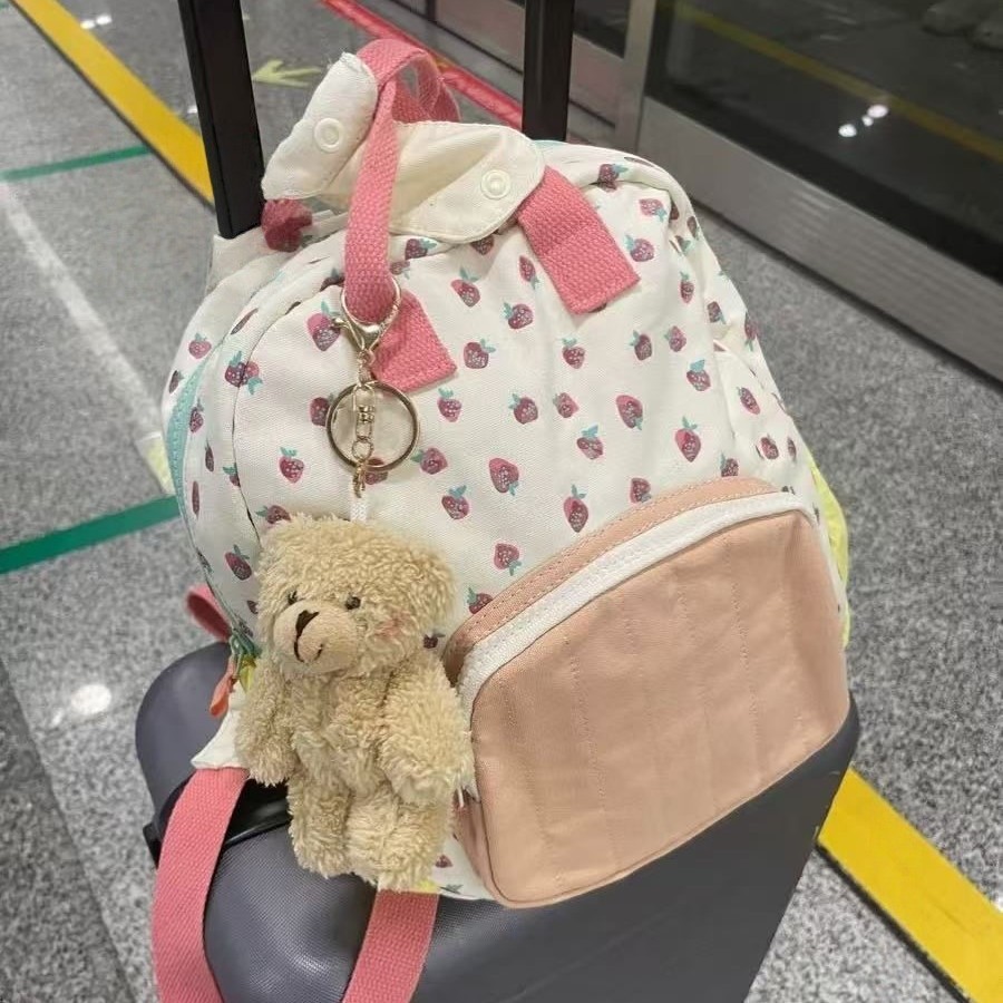 新しいキャンバスイチゴバックパック子供と女の子のためのドーパミンカラーマッチングかわいい通勤レジャー旅行スクールバッグキャンパス