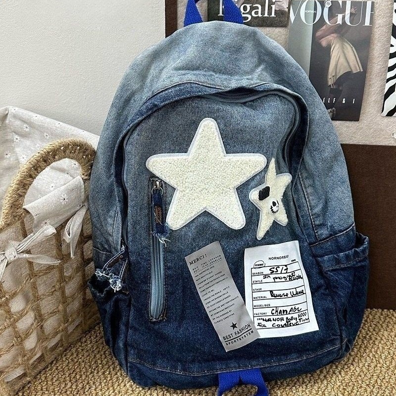 スタースクールバッグ女子大生日本クリエイティブキャンバスデニムバックパック高校生カジュアルバックパック女性