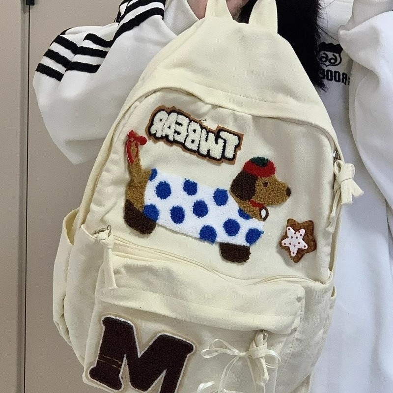 バックパック女性のバッグ漫画子犬新しいファッションコントラストカラーシンプルなバックパック大容量旅行バッグ学生スクールバッグ