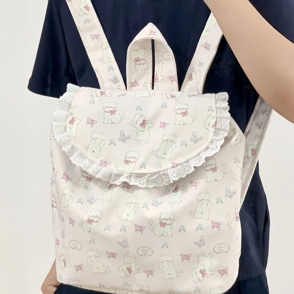 ガーリーハート 大容量 猫 キャンバスバッグ バックパック レース 通勤トートバッグ カジュアル ポータブルバックパック