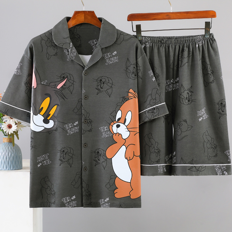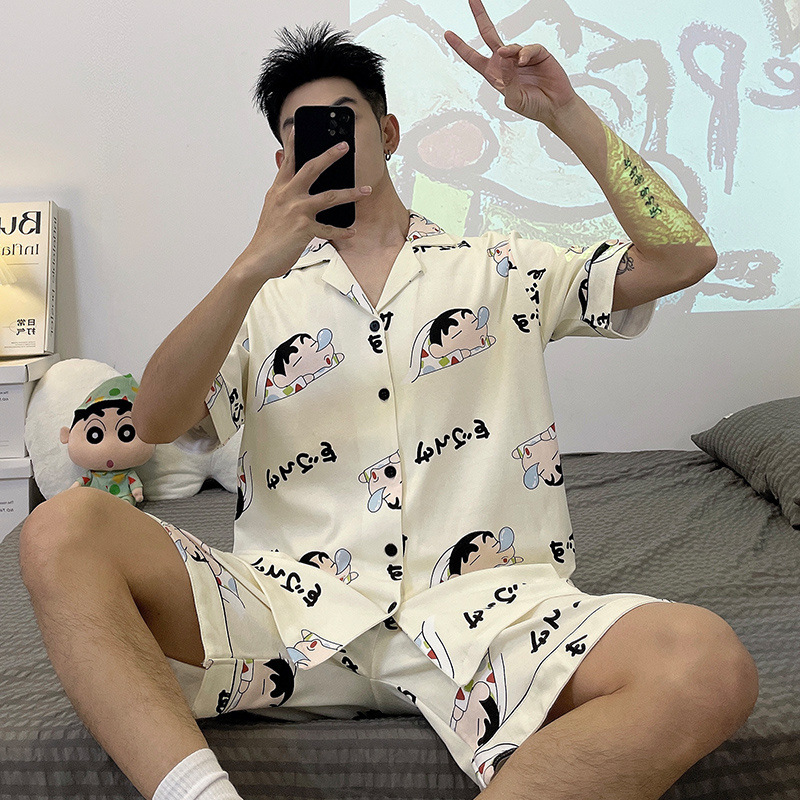 メンズパジャマ夏半袖ショーツ漫画ティーンエイジャーカジュアル夏薄いアウターウェアホーム服学生スーツ